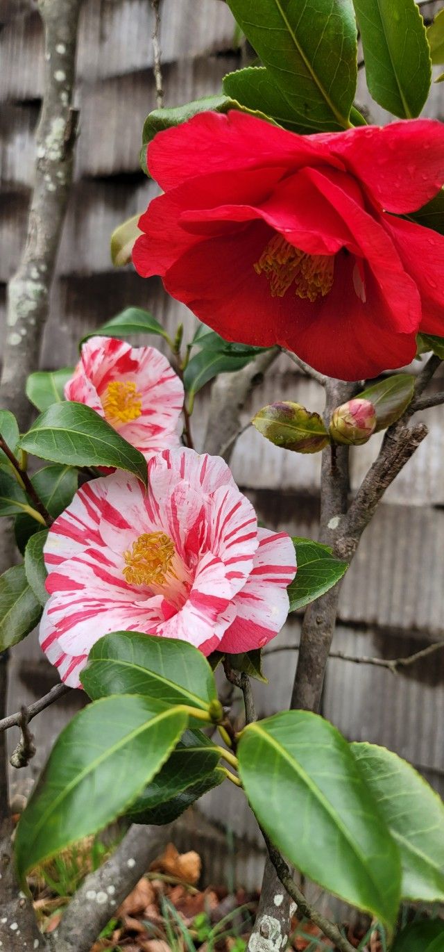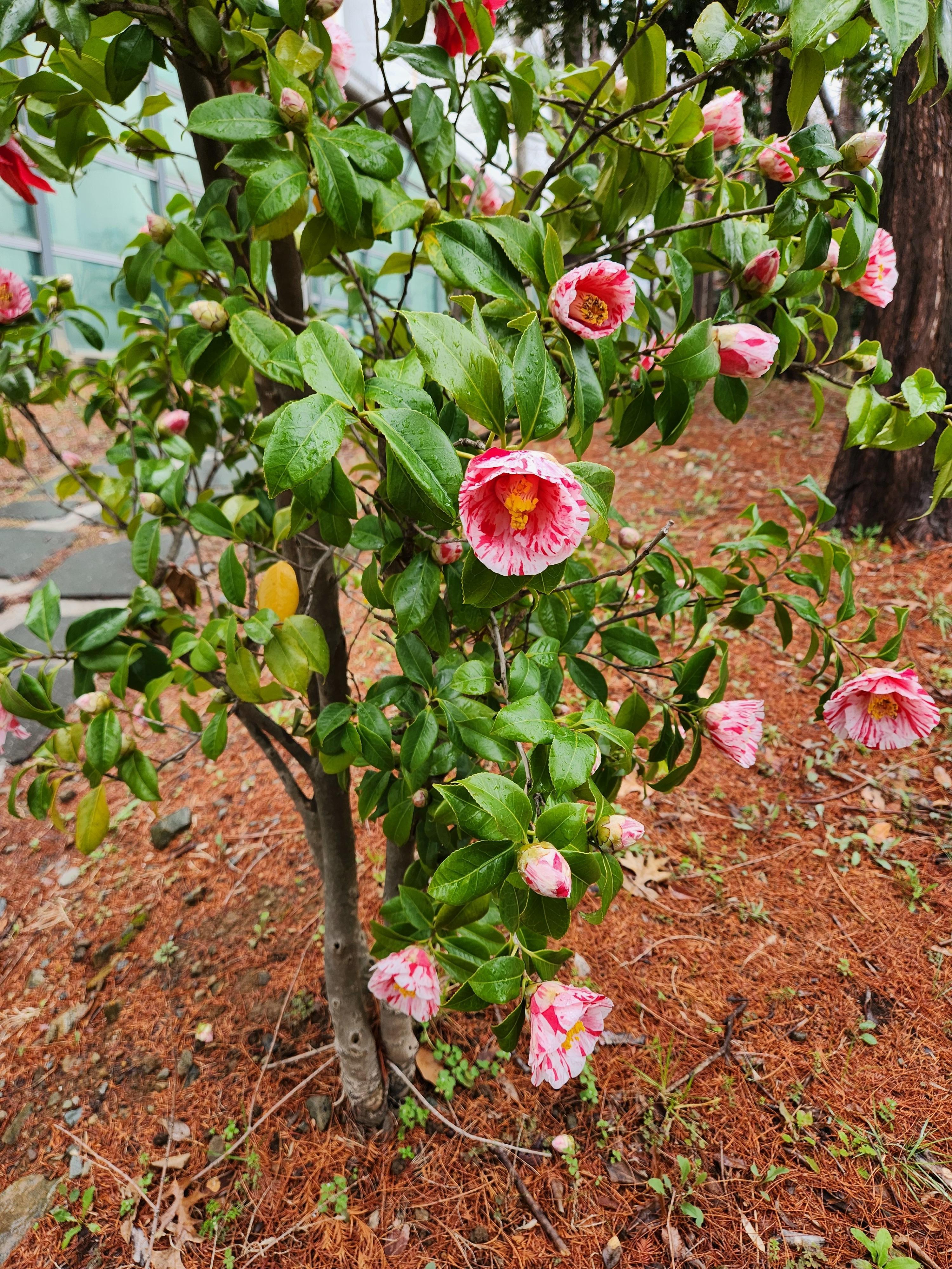 동백꽃색이 이렇게 다양한 줄 처음알았네요. 아파트 담벼락에 핀 동백꽃인데 너무 이뻐서 사진을 정신없이 찍었답니다. 계량종이 많아서 색상이나 꽃모양이 다양하다고 합니다.