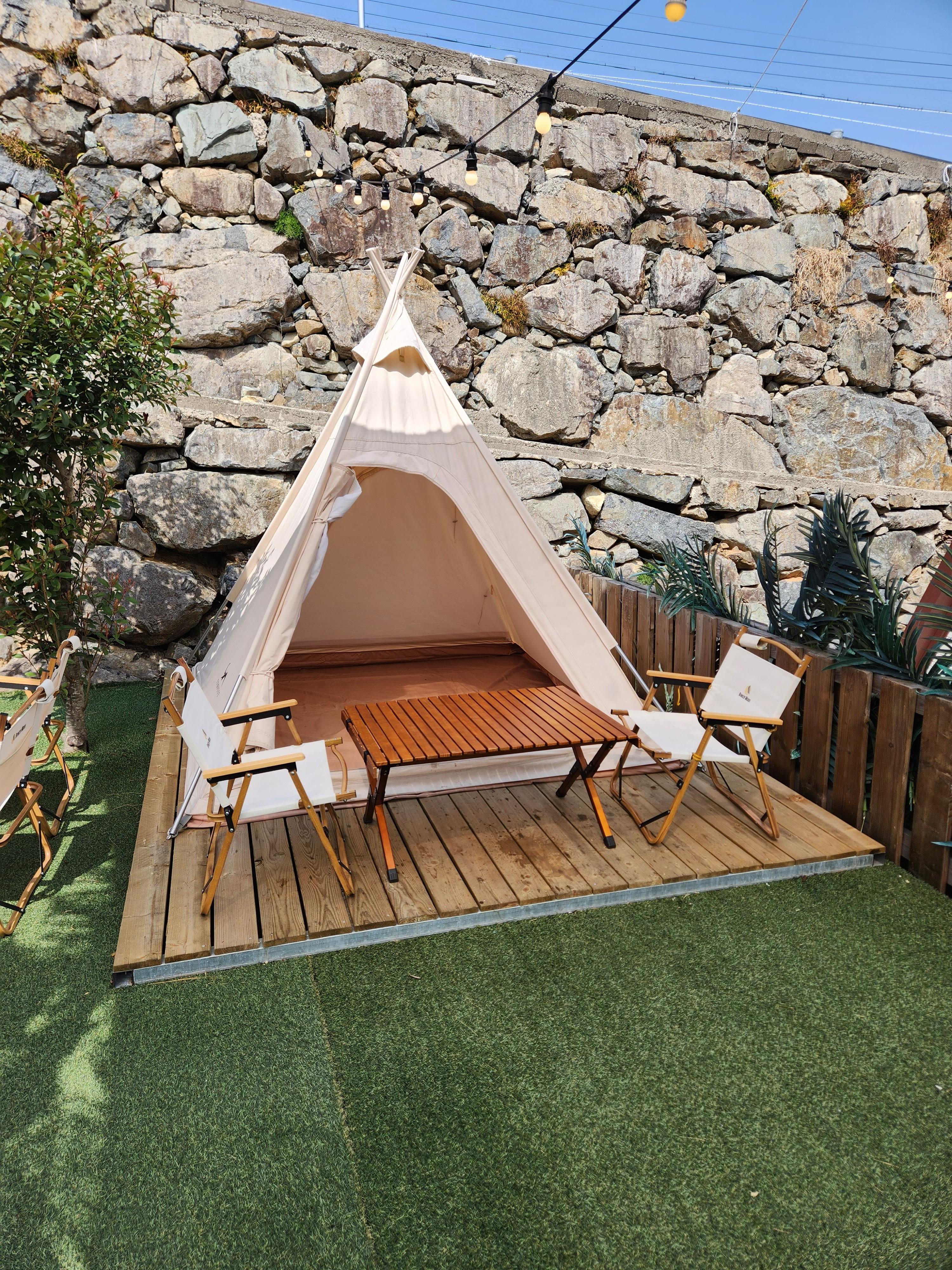 이번에 야외 공간을 캠핑컨셉으로 리모델링을 했더라구요. 리틀핀이라고 오픈했는데 날씨가 따뜻해지면 여기 앉아서 시간 보내기 너무 좋을 것 같아요.