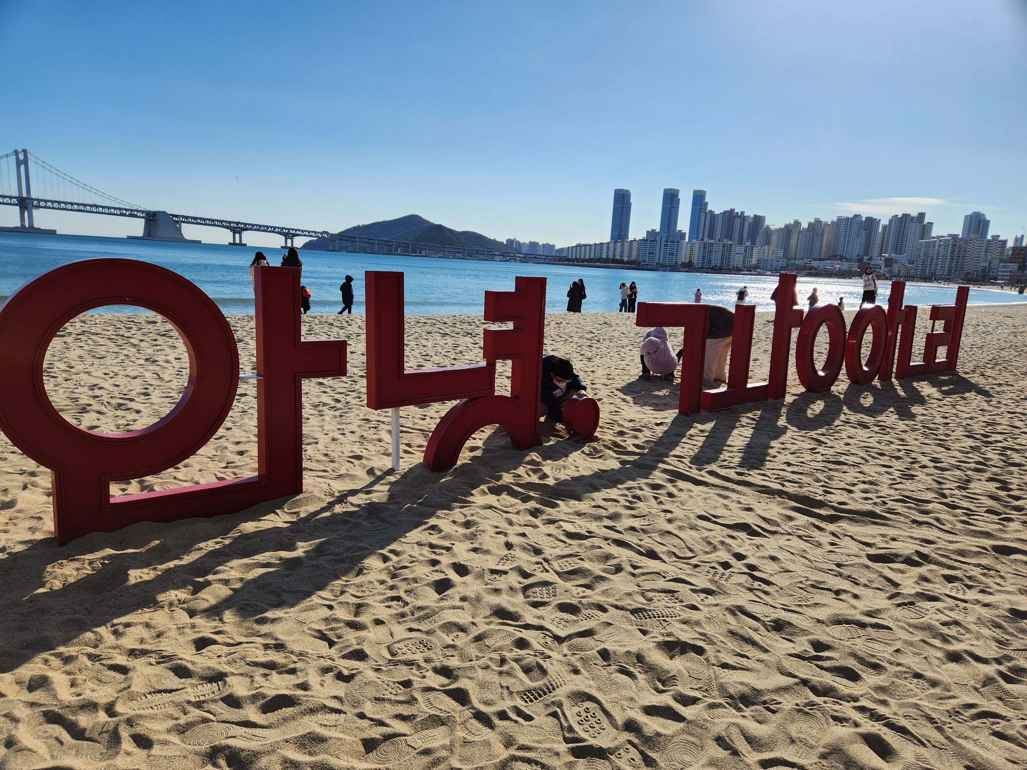 포토존에 있는 '안녕, 광안리' 글자입니다. 광안대교를 배경으로 찍으면 딱이겠죠? 역시나 많은 분들이 사진을 찍으려고 줄을 서는 곳입니다.