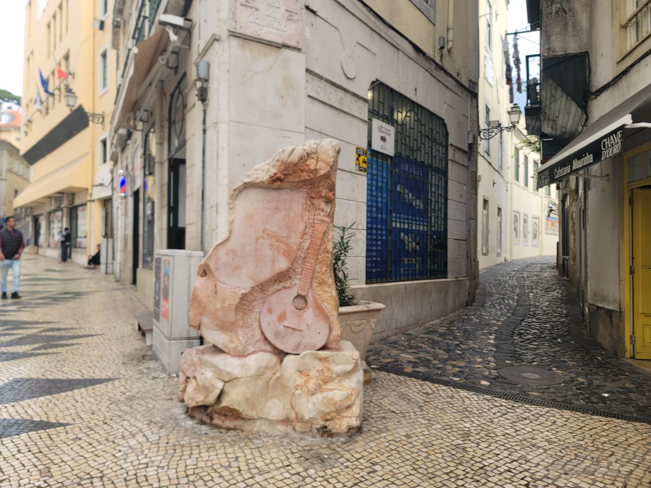 파두 기타 석상이 있는 골목 입구에서 Fado 거리가 시작된다는 것을 보여주는 것 같고 파두 거리가 있는 모라리아 지구는 과거 이슬람교를 믿는 무어인들의 피난처였다고 한다~ 현재는 마르팅 모니즈 광장을 중심으로 아시아, 아프리카, 아라비아 사람들의 상가들로 밀집한 다문화 지구이다.