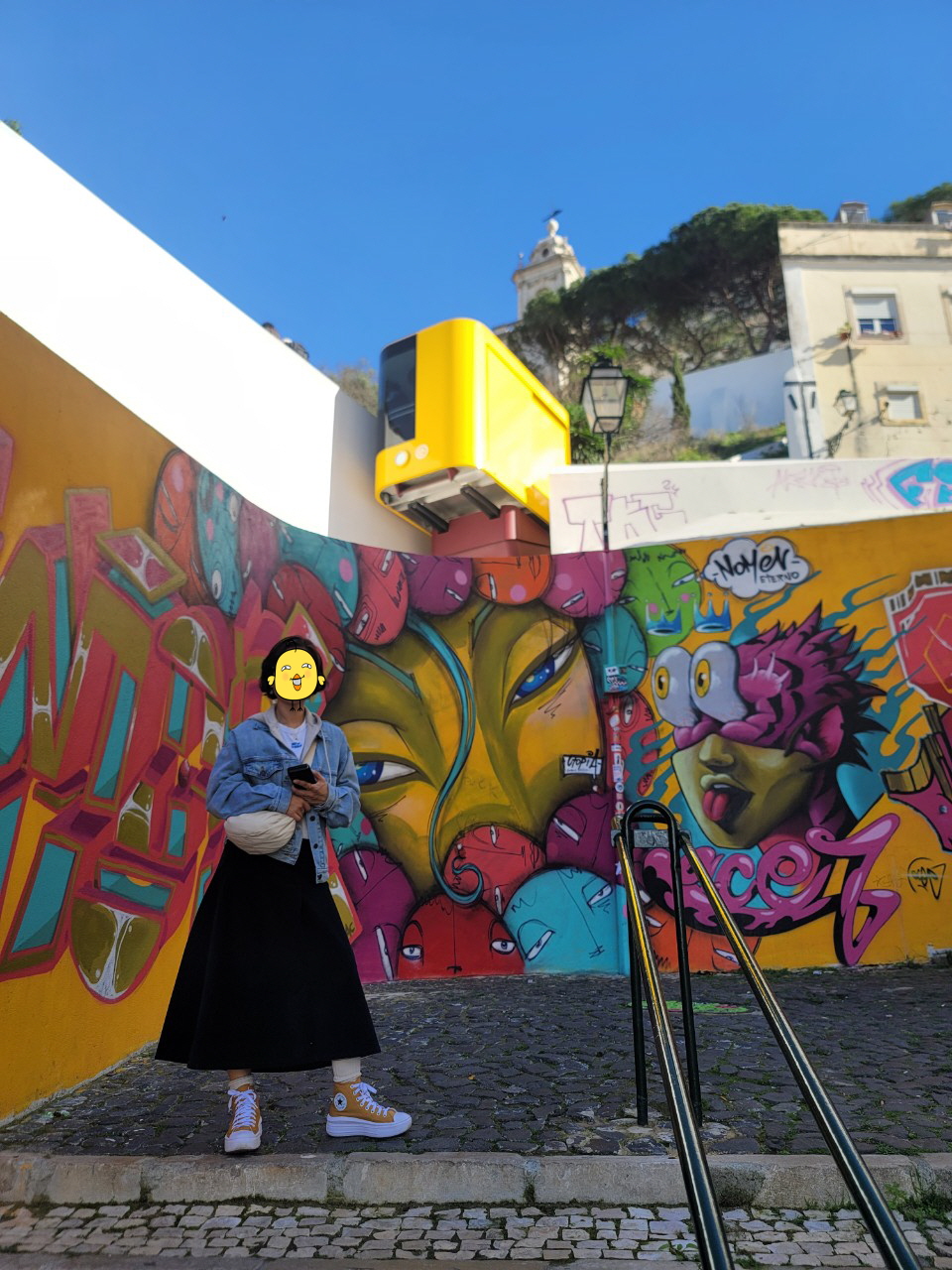 Caracol da Graca는 우아한 달팽이라는 뜻으로 그라사 전망대까지의 언덕길이 달팽이가 우아하게 기어간 흔적처럼 보이기에 붙인 이름인듯 싶은데 '카라콜 다 그라싸' 언덕길의 시작점에서 그라사 전망대까지 푸니쿨라(아래 왼쪽 상단)를 타고 올라가거나 그냥 계단을 천천히 걸어 올라 가도 되는데 우린 걸으며 그래피티 그림들을 감상하기로 했다.