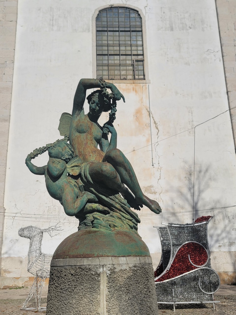 그라사 성당 남쪽에 그라싸 정원(아래 사진)의 입구에는 19세기 후반 프랑스 조각가 Mathurin Moreau의 꽃요정 페리 조각상과 산타 썰매가 관광객을 맞이하고 있다(위의 오른쪽 사진 참조) .