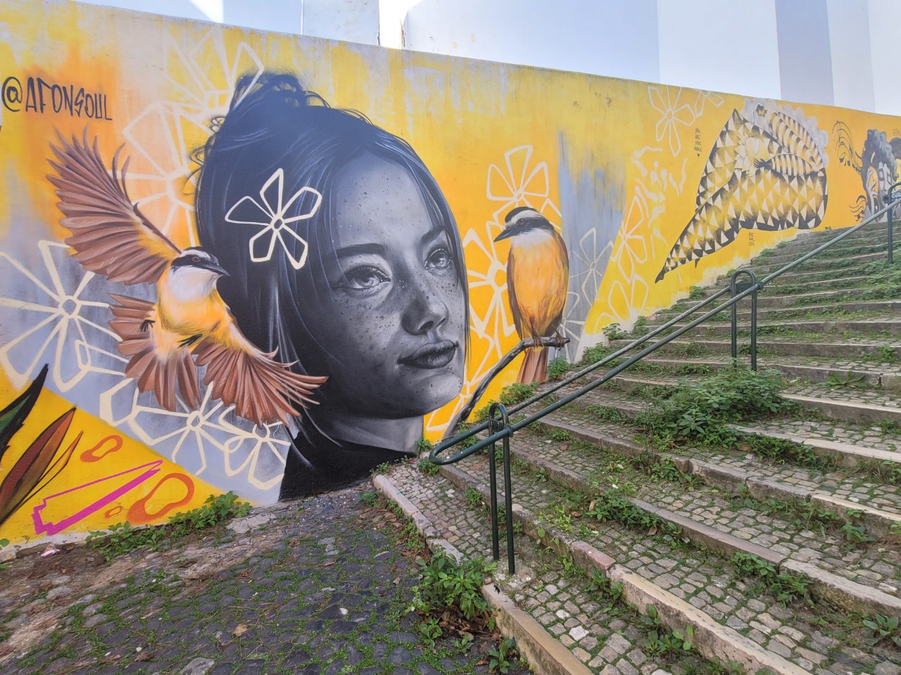 한국의 경우 과거 서울시의 도시재생사업 일환으로 골목길 담벼락에 미대 학생 등이 아기자기한 그림을 그렸던 것과 달리 포르투갈은 골목길 담벼락 외에 건물이나 아파트 벽면에도 그래피티 전문화가들의 수준높은 그림들을 자주 보게 된다.