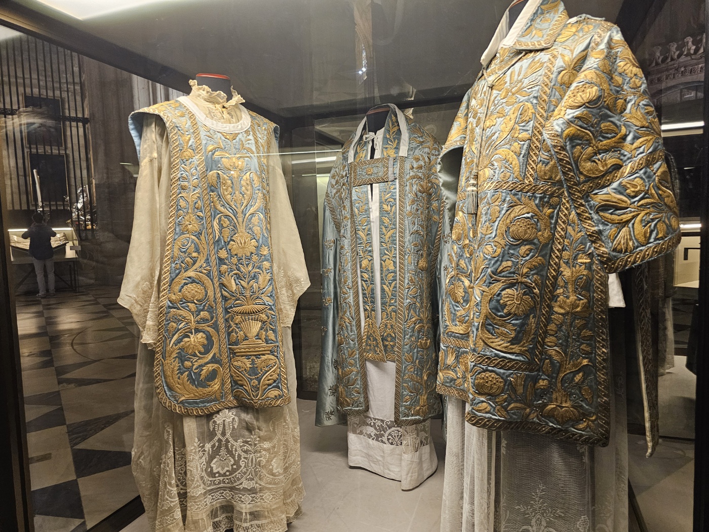 위 사진 속 제의는 1520년 10월 23일 대관식에서 카를5세 황제가 입었던 것이라 하는데, 약 5백년 남짓 오랜 세월을 빗겨간 것처럼 아직도 생생한 아름다움을 유지하고 있다.