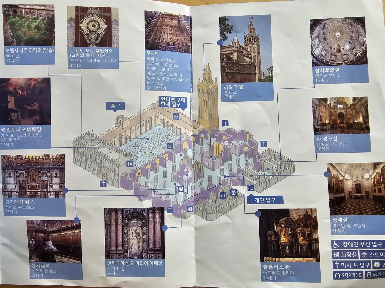 세비야 대성당 내부에 있는 한글판 안내자료는 아래와 같이 A4용지 2창을 반으로 접은 소책자 형태이다.