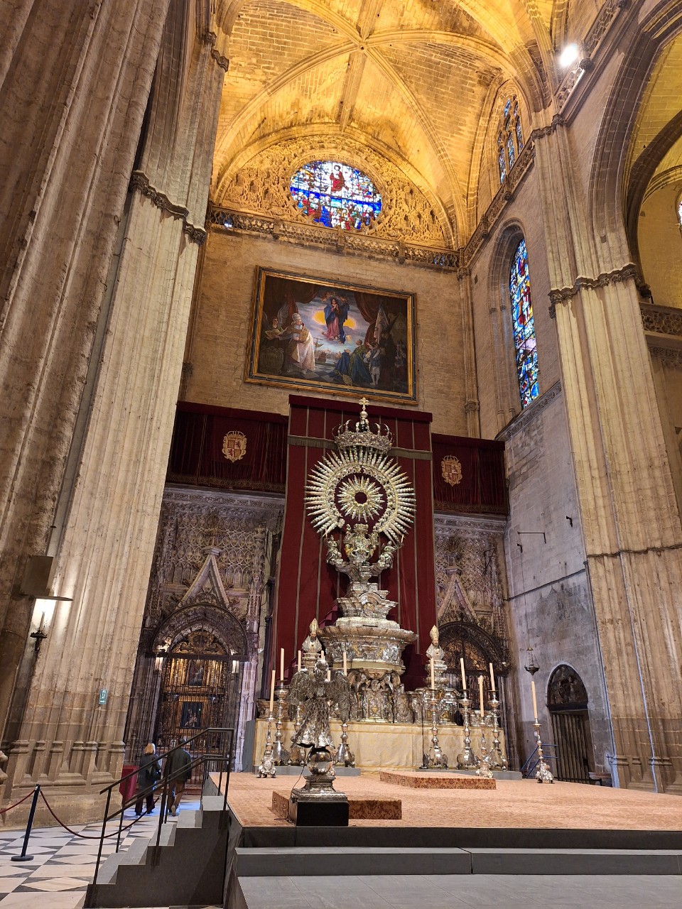 세비야 대성당은 바티칸의 성 베드로 성당과 브라질의 아파레시다 성모발현 국립대성당에 이어 세계에서 세 번째로 큰 고딕성당이며, 스페인에서는 가장 크다고 한다. 그렇기에 내부로 들어서자마자 먼저 웅장함에 압도되며 그 다음엔 화려한 분위기에 탄성짓게 한다.