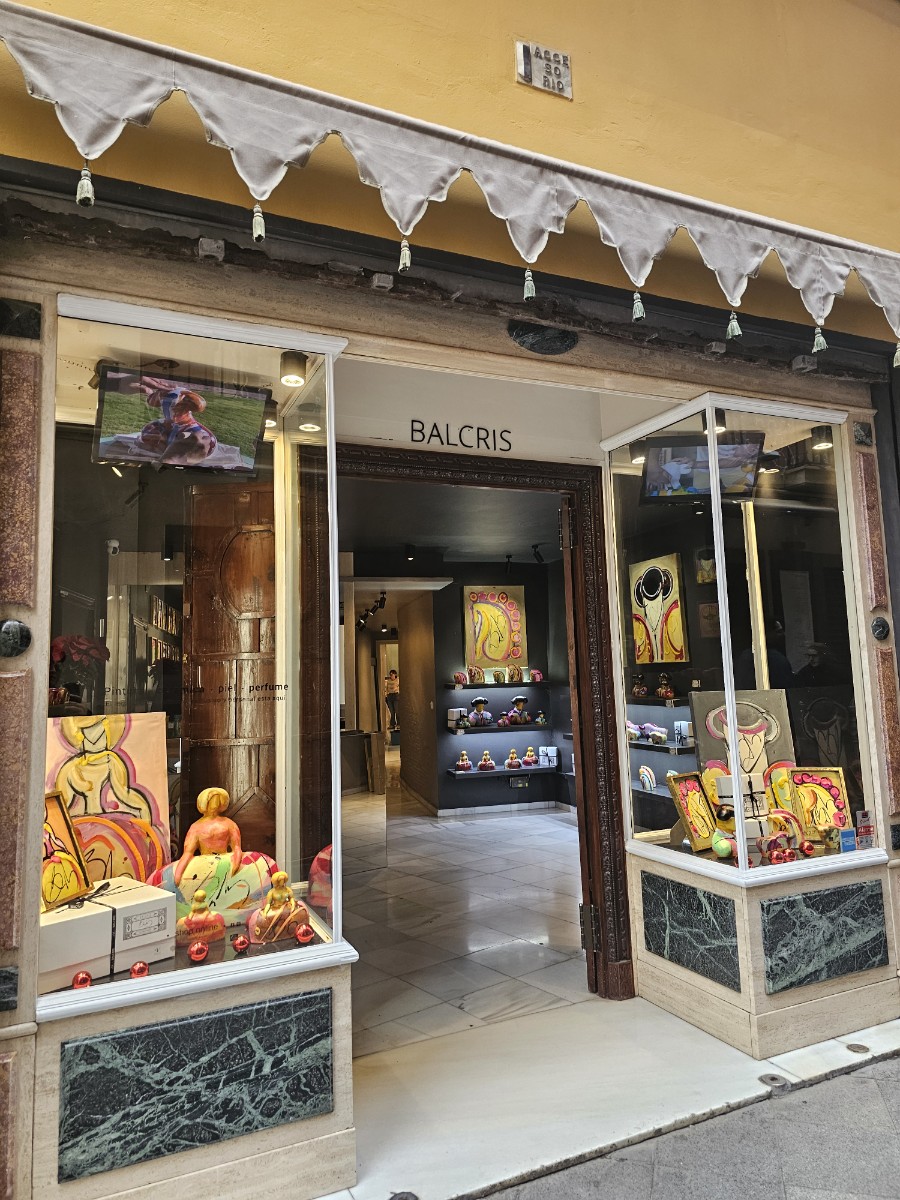 그렇게 여러 상점들을 지나 프란스코 거리가 끝날 무렵 El Jardin이라는 선물가게 옆엔 노란색 건물에 이름 없는 상점에 진열된 목걸이 등 엑세서리가 여성들을 유혹하고 있고, 좀더 가니깐 Balcris라는 미술관도 보였다. 거리의 상점과 사람들을 구경삼아 사진도 찍으면서 지루하지 않게 걸었던 것 같다.