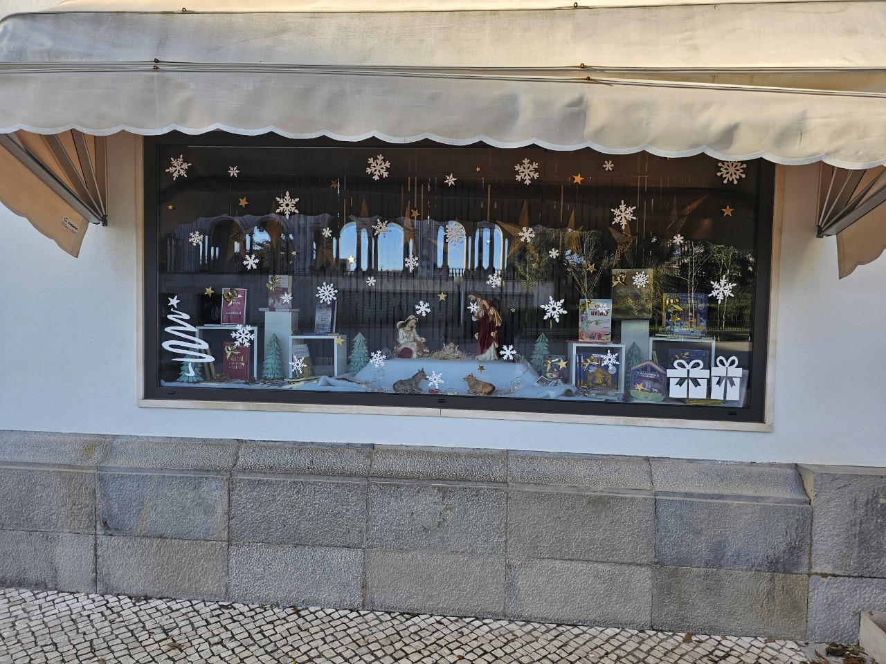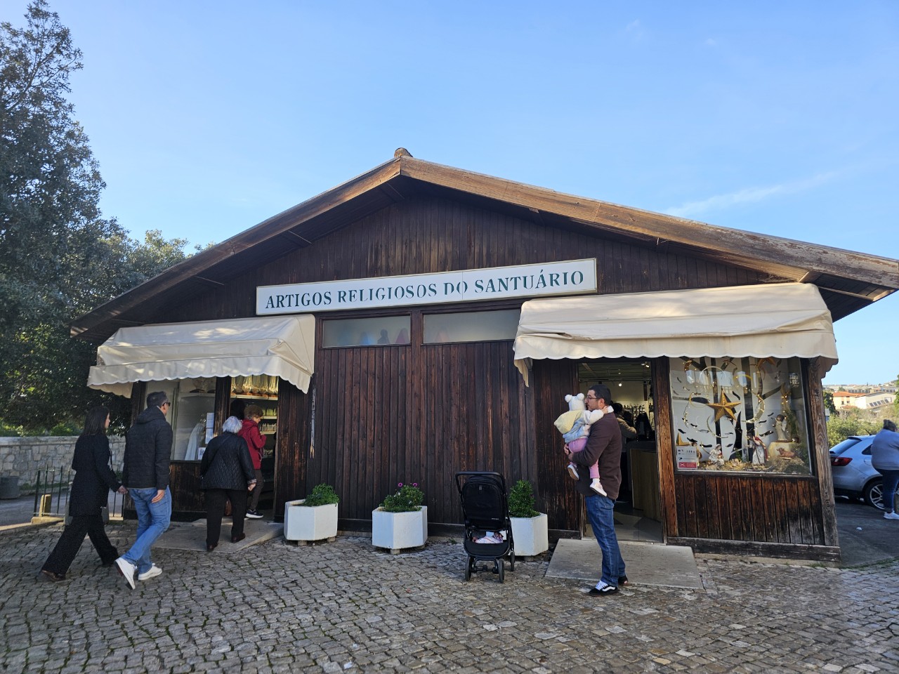 로사리오 바실리카 성당과 성모 발현 예배당(작은 경당) 사잇길로 들어서면 교회 용품(아래 좌측)과 성소 서적(아래 우측)을 파는 곳이 나타나는데, 역시 이곳에도 많은 사람들이 묵주와 같은 기도용품과 파티마 기념품 등을 파는데, 우리는 그곳에서 요셉, 마리아, 아기예수가 함께한하트 모양의 흰색 도기를 구입해서 12월 크리스마스 마켓 시즌에 아기예수 탄생도 기념하고 집안 분위기를 살려주는 장식품으로 활용했다.
