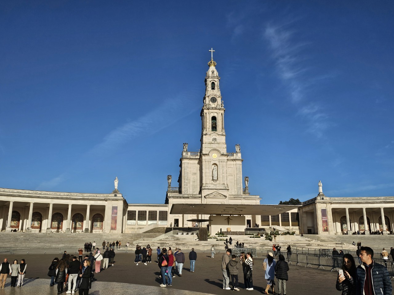 로사리오 바실리카 대성당(상기 사진 중앙)은 1917.05.13. 포르투갈 파티마에 살았던 루시아, 프란시스코, 자신타 총3명의 목동들 앞에 성모 마리아가 발현한 것을 기념하기 위해 1928년 착공해 1953년 완공하였다. 이 대성당으로 들어가기 위해서는 파티마 광장을 거쳐야 한다.