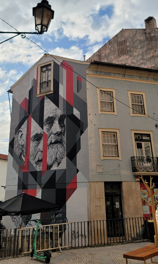 지난번 다뤘던 Fereira Borges 거리와 Visconde da Luz 거리의 경계인 핑크 트라이앵글 빌딩의 맞은편에 Samina라는 아티스트가 1888 산타 클라라 양모 공장을 설립하여 당시 지역산업을 이끌었던 Jayme Planas Coronellas라는 노인 얼굴을 그린 대형벽화 건물과 서울치킨 안내판 사이로 아래로 내리막 골목길이 있다.
