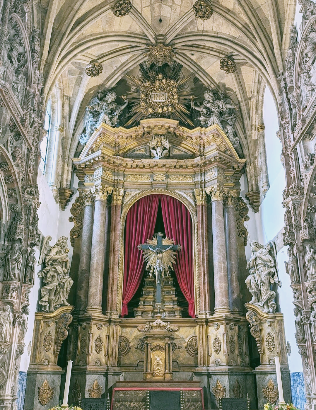 옛 성 크루즈 수도원의 중앙부에 위치한 산타 크루즈 성당(Monastery of the Holy Cross)은 1131년 포르투갈 초대 왕인 아폰수 엥히케스(Afonso Henriques)에 의해 세워진 후 그의 아들 산슈 1세(Sancho I)와 함께 안치된 곳으로 현재 성당 외관과 내부 구조가 대부분 16세기 마누엘린 양식으로 대대적 개조가 이뤄졌다.