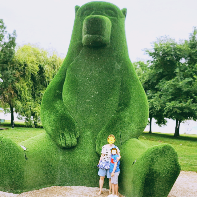 마누엘 브라가 박사 공원의 끝자락에 가면 맥주를 파는 음식점들과 어린이 놀이터를 지나면, 4km의 산책로와 자전거 도로가 있는 Parque Verde do Mondego 몬데구 그린 파크가 나오는데 큰 초록 곰(Urso Grande Verde) 조형물이 눈에 띄는데 당초 자연 잔디로 제작되었다가 관리상 문제로 인공 잔디로 덮었다고 하여 잔디 곰(Urso de Relva)로 불리며 여기 공원의 아이콘 중의 하나이다.