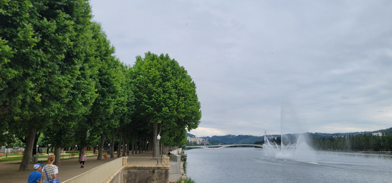 특히, Mondego 강 한가운데서 볼 수 있는 화려한 분수대가 눈에 띄는데 이는 몬데구 강 위의 중앙에서 40미터 높이의 중심 제트가 솟아 오르며 주변엔 16개의 분사 노즐이 야자수 모양으로 물을 뿜는다. 밤에는 LED 조명으로 빛나면서 조명과 물의 움직이 어우러진 빛과 색의 환상적인 쇼를 연출해 관광객들에게 매우 인상적인 볼거리를 제공하므로 석양이 질 무렵 나와서 일몰 후 분수가 조명을 받으며 빛나는 밤 경치를 감상하면 좋을 듯 싶다.