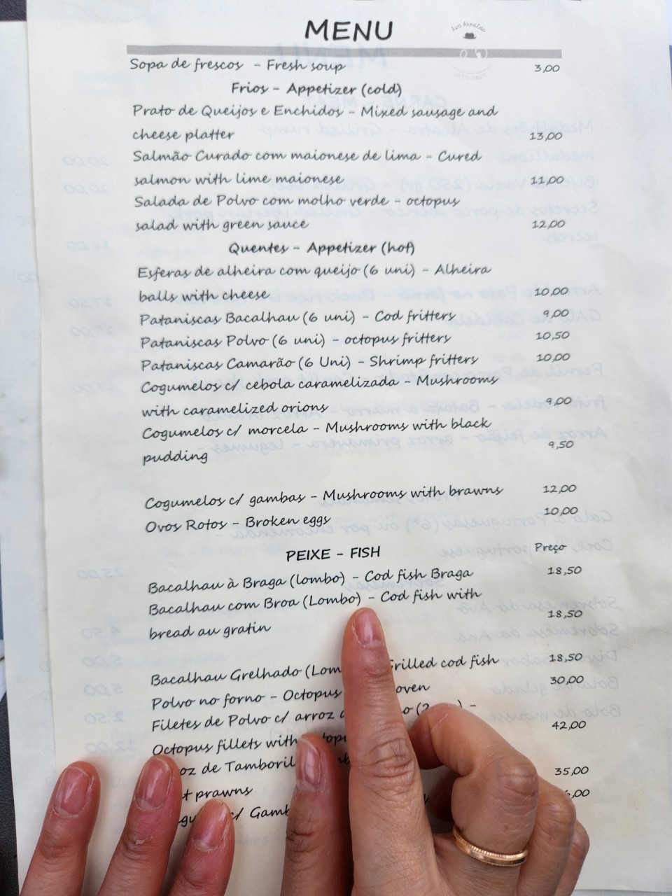 우리가 Avô Arnaldo 식당에 12시 정각에 도착했기에 첫 손님이라 야외 자리에 앉아서 주문을 기다리니 조금 후 현지인 가족 손님도 들어왔는데 거기 꼬마 숙녀가 외국인이 꽤나 신기했는지 레스토랑 실내에서 창밖으로 우리를 수줍게 한참을 바라봤다.