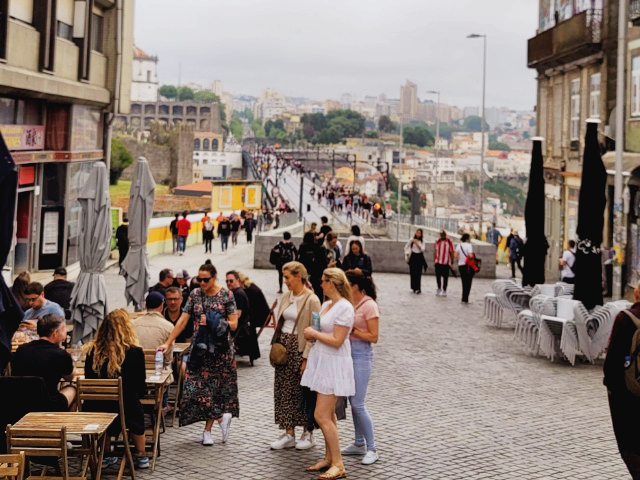 포르투 대성당에서(Se de 800미터 남짓 떨어져 도보로 10여분 걸으면 동 루이스 다리 상층부가 나타 나는데 그곳으로 가기 전의 거리에는 야외 좌석을 갖춘 카페와 레스토랑 등 여러 상점들이 즐비하여 관광객의 발걸음을 멈추게 하며, 거리 초입에는 관광객들을 꼬마 열차가 다른 골목 길로 향하면서 시선을 끈다.