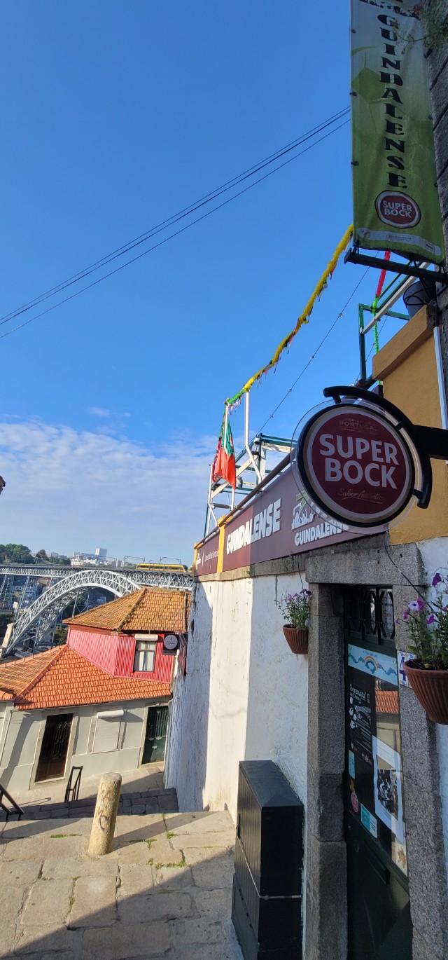 도우루 강 방향의 내리막 골목길의 중간을 지났을 무렵 Guindalense라는 주점이 나오는데 동 루이스 다리를 바라 보면서 프란세지냐 같은 음식과 스파클링 와인 상그리나 또는 수퍼복과 같은 맥주를 즐길 수 있는 뷰 맛집이라고 한다. 특히 케이블카가 지나가는 모습도 볼 수 있고, 밤에 동 루이스 다리의 야경을 감상하며 식사하기 좋은 분위기라 한다.