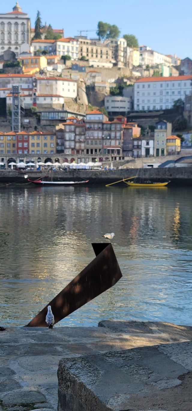 동 루이스 다리의 하층부 도로를 따라 도우루 강을 건너 오면 히베이라 데 가이아 부두(Cais da Ribeira de Gaia)라는 곳에 도착하게 되는데 이 곳에서 포르투 구시가지 방향의 도우루 강을 조망하면 경치가 정말 끝내준다. 위 사진이 바로 그것이다. 부두에 많은 갈매기들이 도우루 강 위를 날아 다니다가 이곳에서 휴식을 취한다.