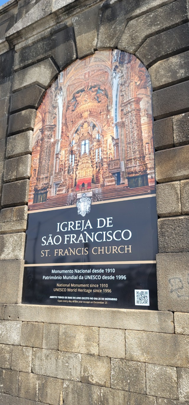 드디어 볼사 궁정 바로 옆에 붙어있는 상 프란시스쿠 성당(Igreja de São Francisco)이 나온다. 이 곳 성당은 1383년 착공되어 외관은 고딕(Gothic) 구조를 기반으로 하지만, 실내 장식은 17세기와 18세기 바로크(Baroque) 및 로코코 양식이 매우 화려하게 가미되면서 호화로운 내부로 탈바꿈했다고 한다.