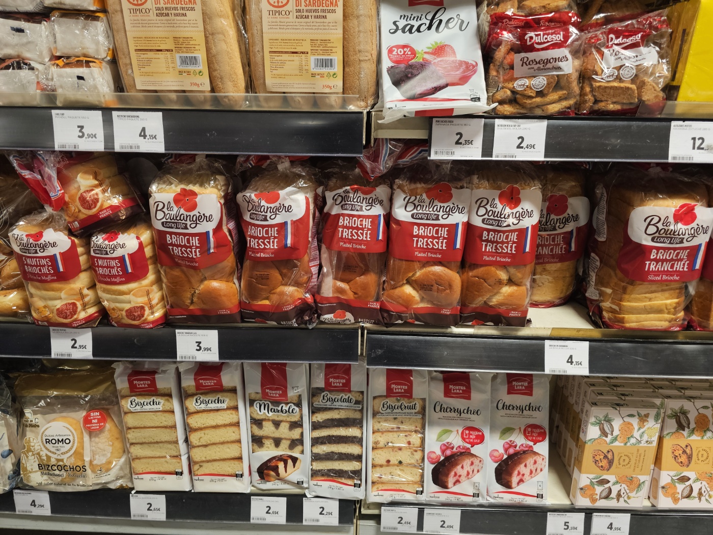 빵의 나라 포르투갈, 스페인 답게 빵류는 2유로에서 4유로 대로 저렴하면서도 맛있다. 2유로 짜리 Pan de leche 우유빵을 결국 골랐다. 실패할 수 없는 우유빵 ^^