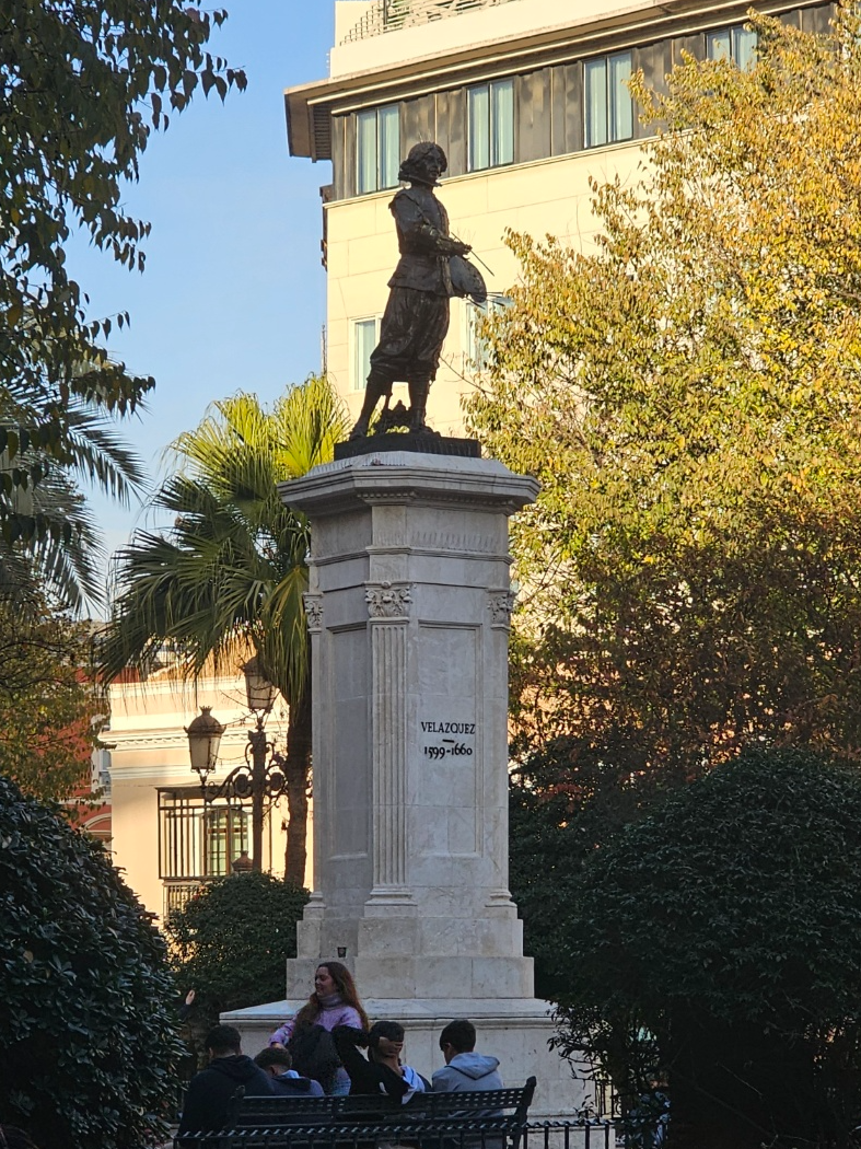 벨라스케스는 스페인 사람들에게 국보급 화가라고 하며, 동상의 모습에서도 왼손으로 파레트를 잡고 오른손으로 붓을 들고 있는 화가로서의 면모를 보여주고 있다. 그의 대표작으로는 '세비야의 물장수' 등이 있다.