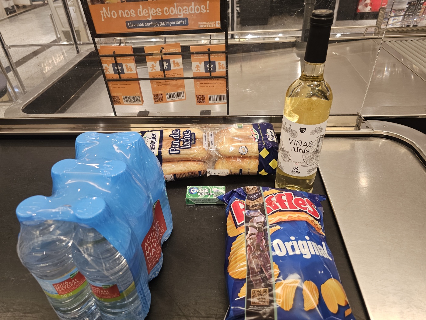 우리가 에어비앤비에 가서 먹을 생수, 우유빵, 7.7유로인데 50% 할인된 와인, 감자칩 과자 이렇게 단촐하게 구입하고 백화점 식품매장에서 나왔다.