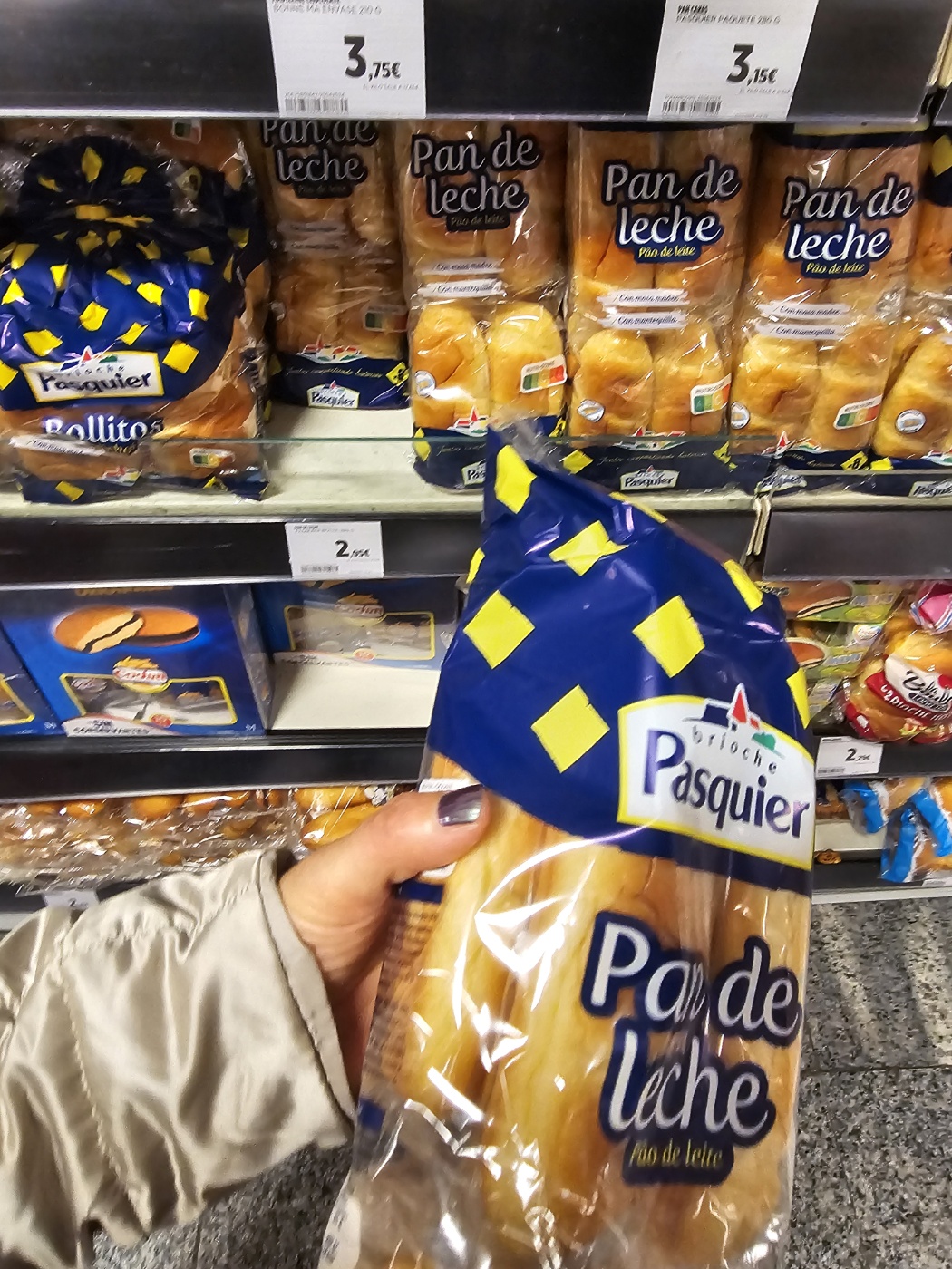 빵의 나라 포르투갈, 스페인 답게 빵류는 2유로에서 4유로 대로 저렴하면서도 맛있다. 2유로 짜리 Pan de leche 우유빵을 결국 골랐다. 실패할 수 없는 우유빵 ^^