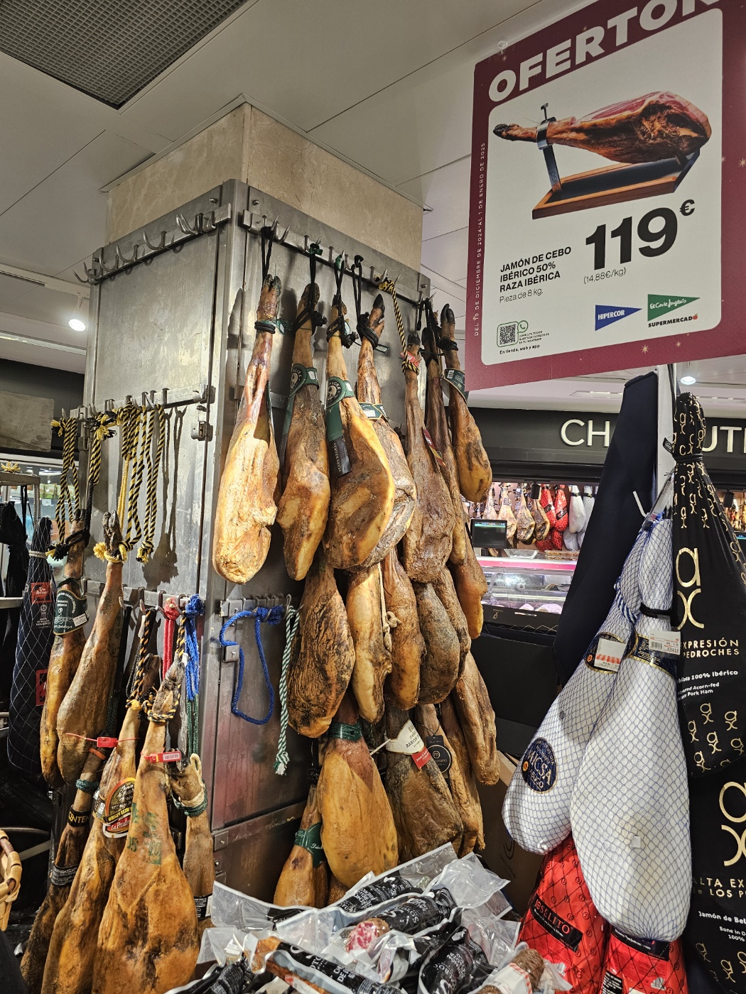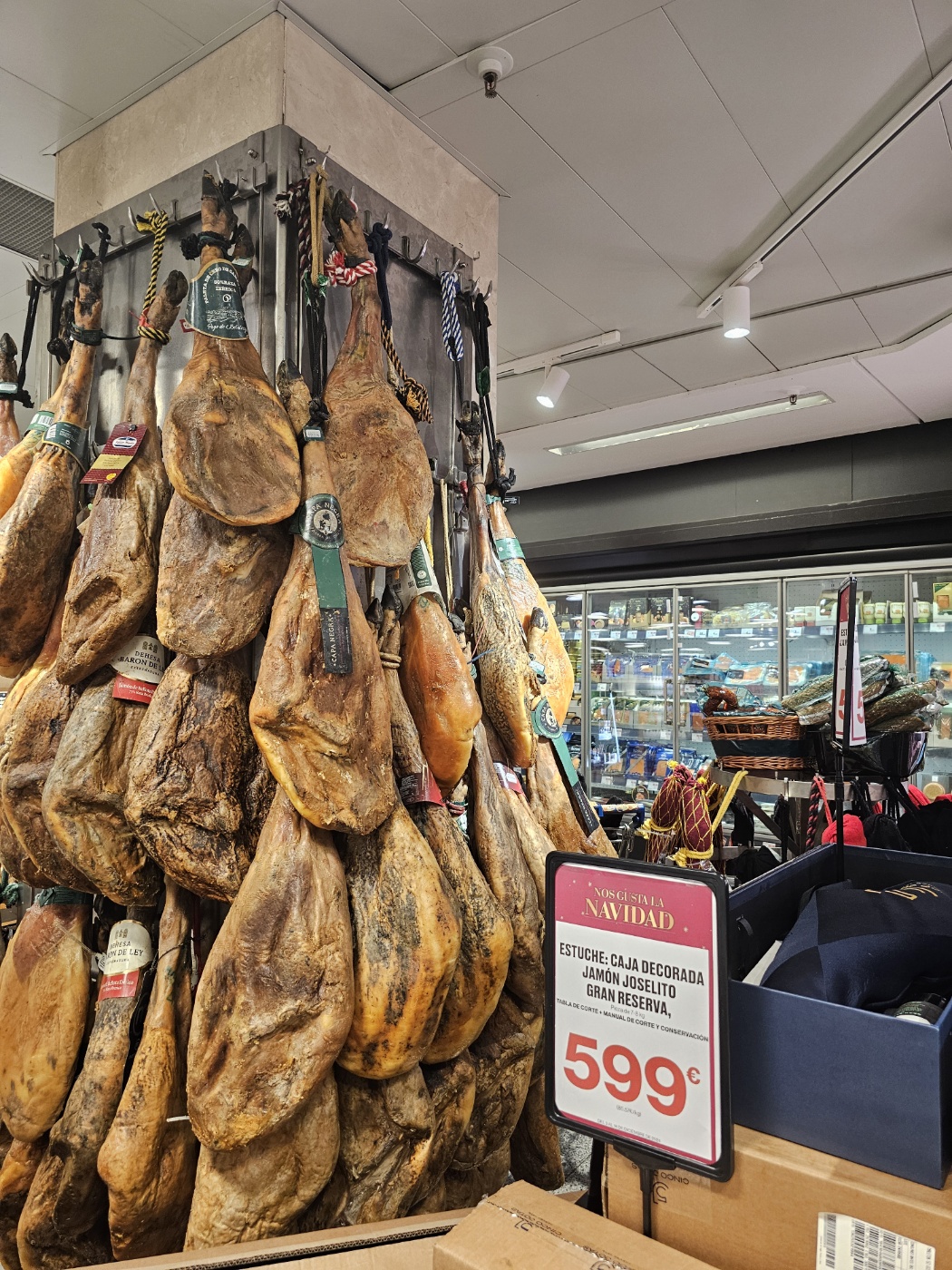 대학시절 개봉했던 영화 때문인지 몰라도 스페인 하면 하몽이 생각난다. 하몽의 가격이 천차만별이라더니 여기 백화점 가격표를 보듯이 119유로에서 599유로까지 다양하다.