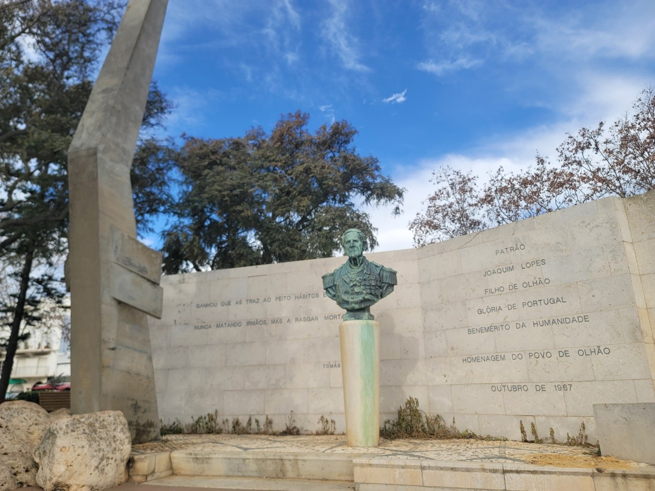 아래 사진은 19세기 해양 영웅인 조아킴 로페스를 기리기 위해 1976년 Jardim Patrao Joaquim Lopes 공원 가운데 세워진 선장 조아킴 로페스 동상 및 기념비이다.