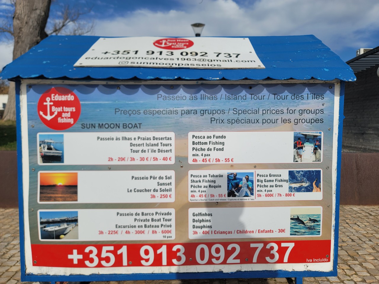 파트랑 조아킴 로페스 공원 끝엔 Ria Formosa 포르모사 강 유역 아르모나섬, 쿨라트라섬 등을 보트로 둘러보는 호핑투어를 홍보하는 안내부스들이 나온다. Passeios Ria Formosa업체는 쿨라트라섬(1시간30분 정박) → 파롤섬(40분 정박) → 데세르타 섬 → 마림 조수 방앗간 총4시간 왕복코스로 운영되며 여름 성수기때 예약이 필수다.