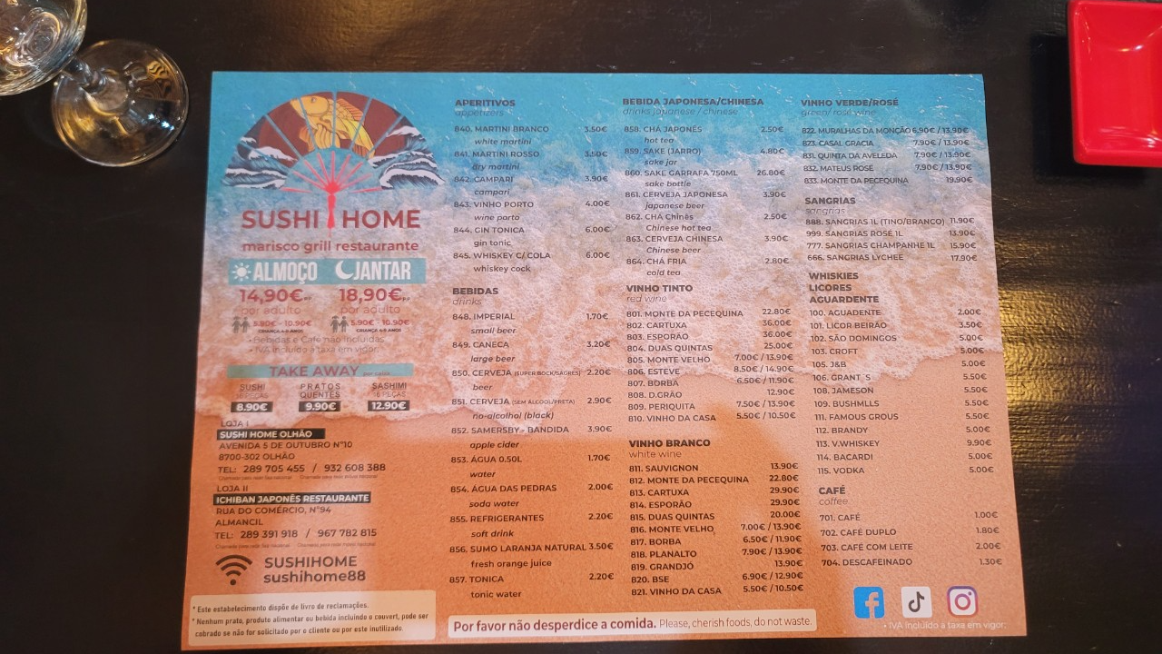 우리 모두 허기진 상태라 무한리필 가게에 가면 딱이겠다 생각에 구글 지도에서 가열차게 검색한 결과, 마침내 딱 맞는 스시 뷔페 집을 찾아냈는데, Sushi home Marisco Grill Olhao 스시 오메 마리스쿠 올량이라는 뷔페 식당이었다.