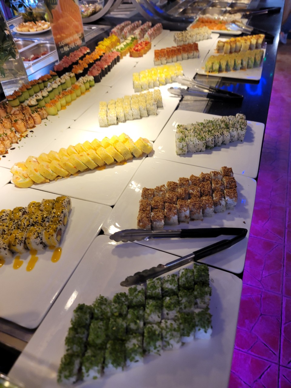뷔페 집에서도 손님들이 비싼 회(사시미) 보다는 저렴한 초밥(스시)이나 김밥(후토마키), 튀김류를 더 먹기를 바랄 듯 싶다. 어떤 스시 뷔페 집의 경우 스시(초밥)에 밥 양이 많은 경우를 종종 본다. 원가절감을 위한 노력이리라,,,