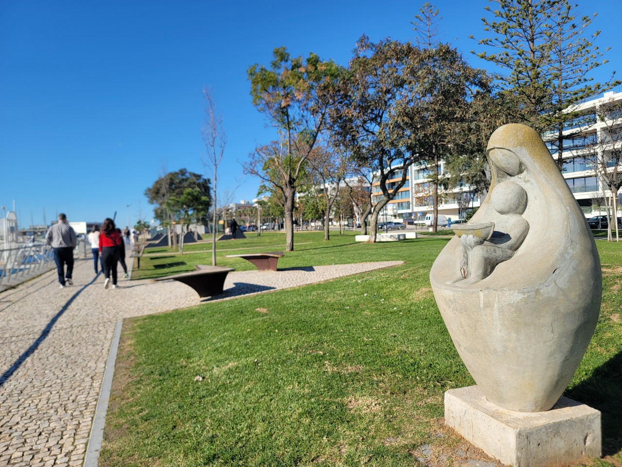 과거 대표적인 카톨릭 국가였던 포르투갈이었기에 공원마다 성모 마리아 상은 어디든 볼 수 있을 정도로 흔하다. 이곳 성모 마리아 상은 아기 예수를 안고 있는 성모 마리아를 돌로 단순한 듯 추상화한 것이라 독특하면서도 정겹다.