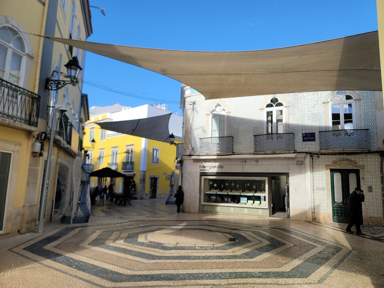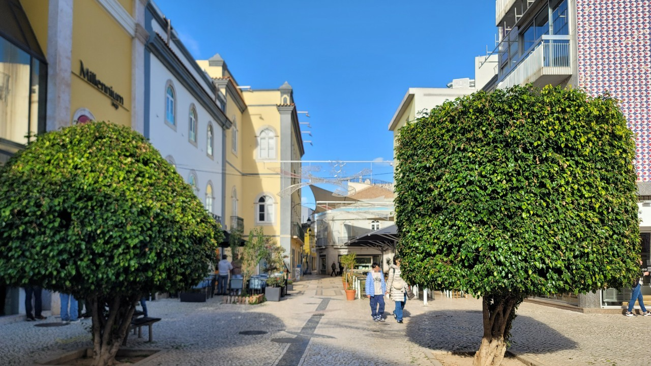 정원수 나무 두 그루를 잘 손질한 골목을 지나니 건물 사이로 하얀 천막으로 그늘을 만드는 곳이 나오는데 Faro 중심 상업지구가 시작되는 도심으로 여기서부터 스트리트 상가들이 하나둘 보이기 시작한다.