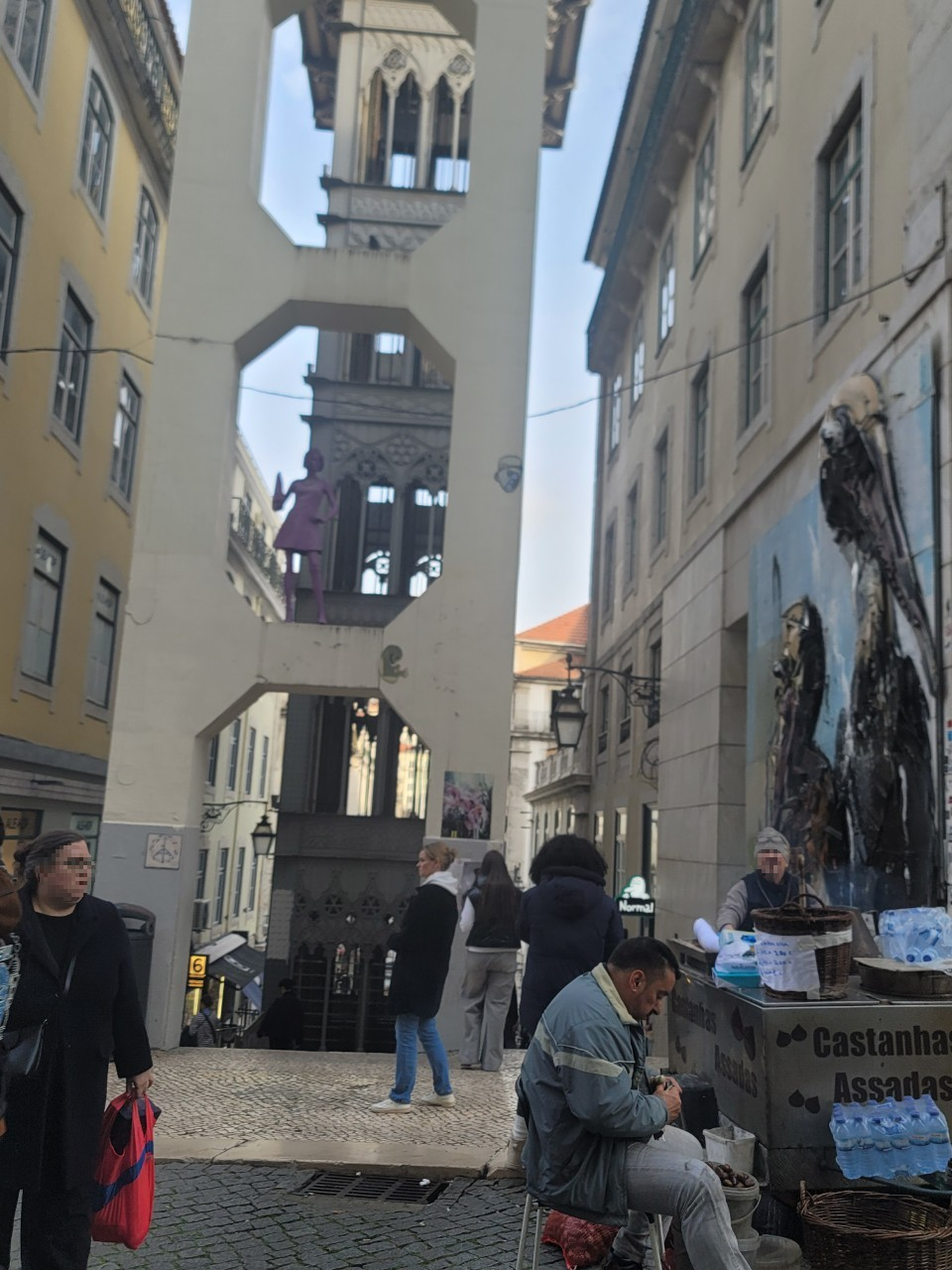 산타 주스타 엘리베이터는 한번에 약 16명 가량 탑승 가능한 엘리베이터 2대가 운영되며 시간표 대로 탑승할 수 있는데 리스보아 카드가 있다면 공짜로 이용할 수 있다. 포르투갈 리스본 골목에서 군밤 장수를 마주치는게 마치 한국 같아 정겹다.