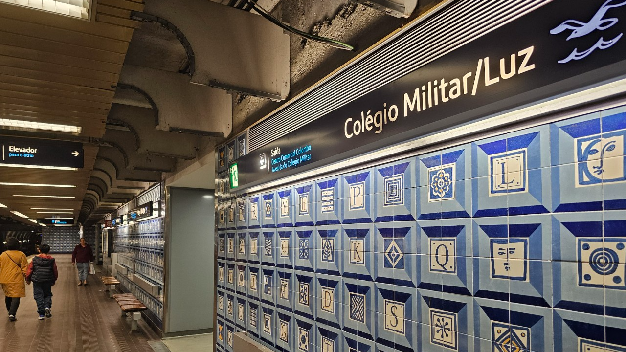 콜롬보 쇼핑몰은 포르투갈 리스본 지하철 중 블루라인(7호선)의 Colegio Militar/Luz역에서 내리면 되는데, 콜레지우 밀리타르 / 루즈 역의 내부는 포르투갈 전통 타일인 파란색 아줄레주 장식으로 지하철 역사의 아름다움을 더했다.