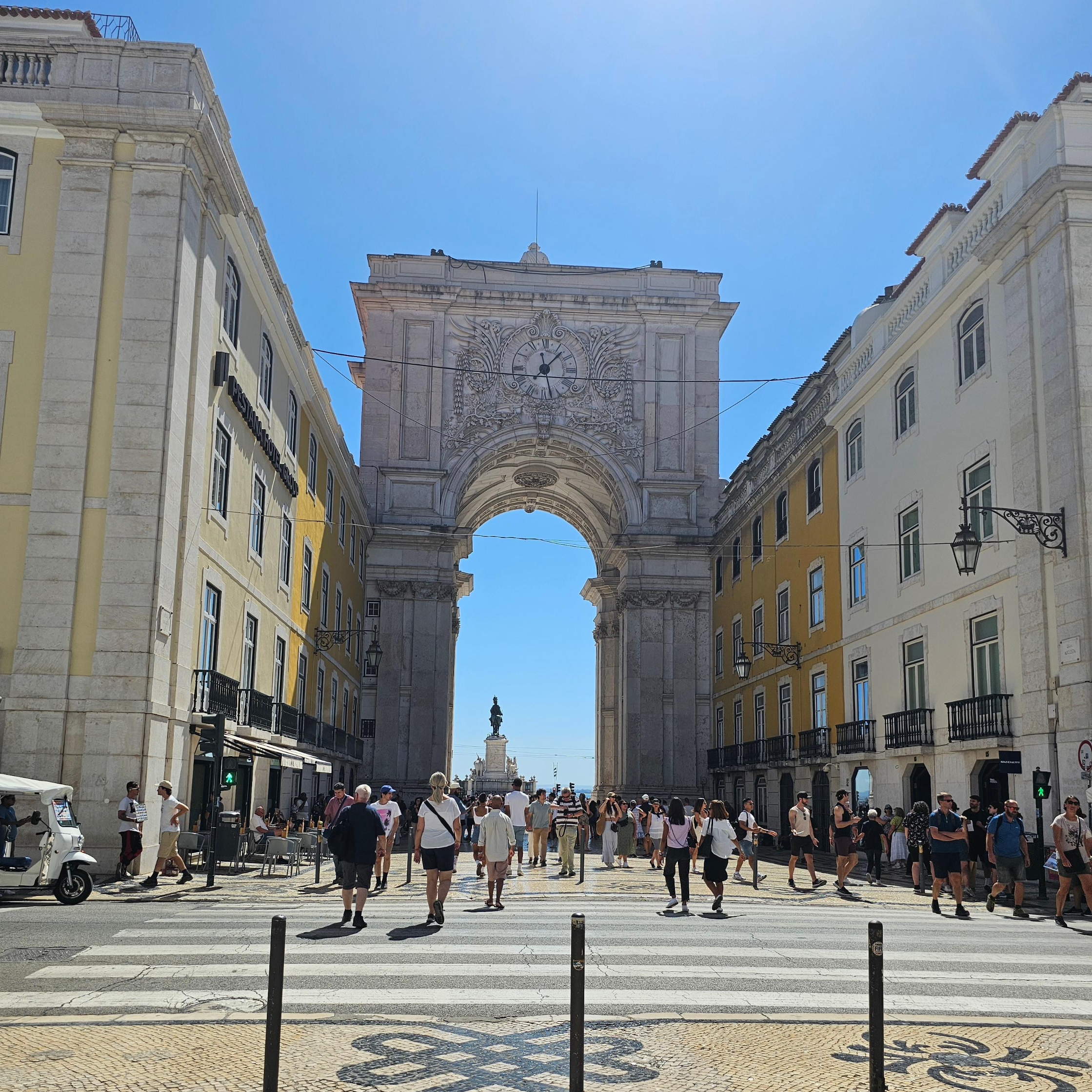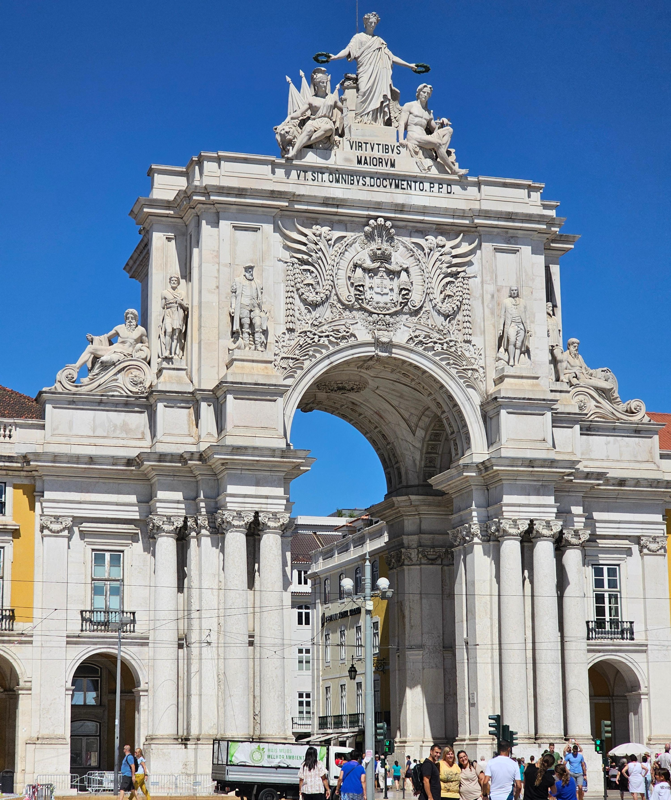 아우구스타 스트리트 아치, 즉 개선문은 로마 황제 아우구스투스에서 따온 것으로 개선문 위에 올라가면 리스본 시내와 테주 강을 조망할 수 있는 전망대가 있으며, 그 입장료는 3유로이지만 리스보아 카드가 있다면 무료 입장 가능하다.