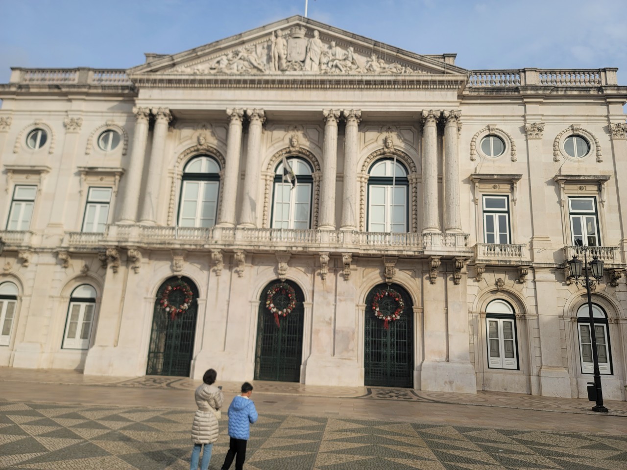 시청 청사를 벗어나면 아주 큰 광장이 나오는데 그곳이 코메르시우 광장인데, 상업의 광장이라는 뜻으로 테주 강변 바로 앞에 위치해 리스본의 항구 도시 정체성을 가장 잘 드러내는 공간이다.