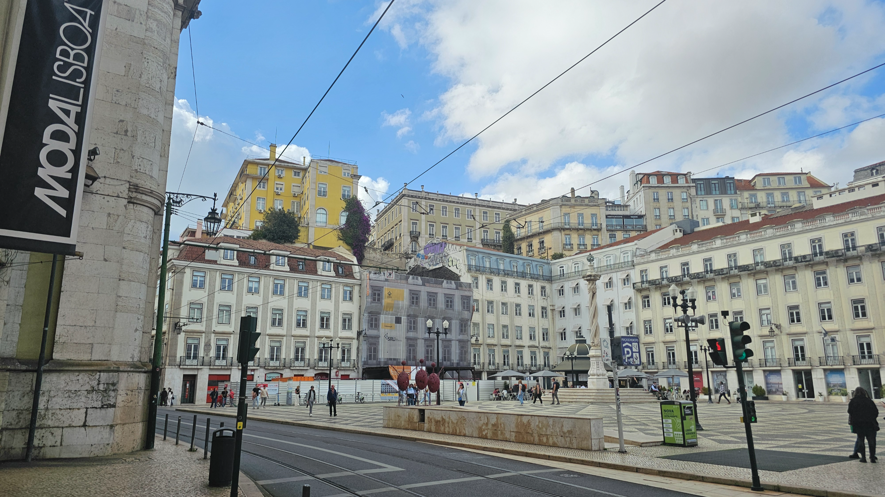 시청 청사를 벗어나면 아주 큰 광장이 나오는데 그곳이 코메르시우 광장인데, 상업의 광장이라는 뜻으로 테주 강변 바로 앞에 위치해 리스본의 항구 도시 정체성을 가장 잘 드러내는 공간이다.