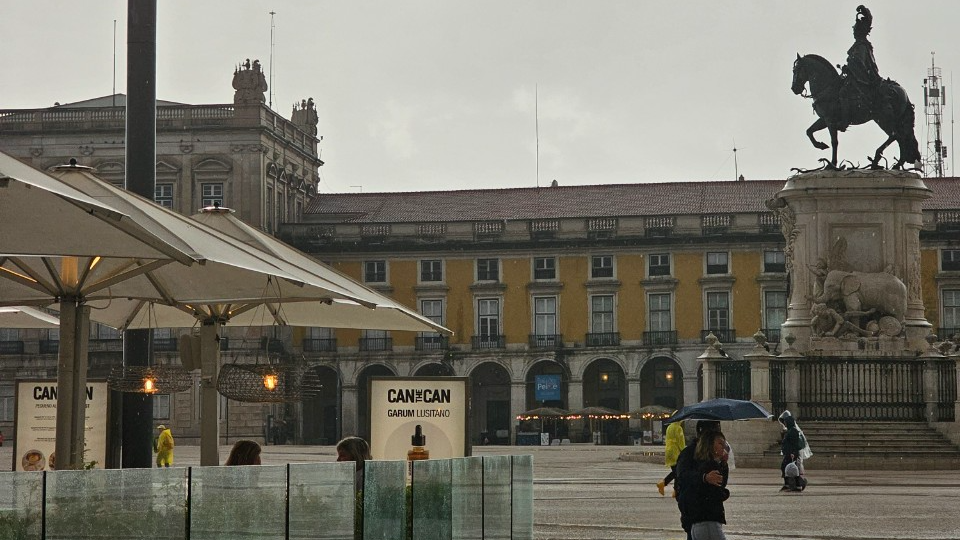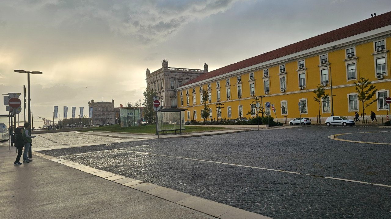 리스본에 잠깐 소나기가 내렸다가 그쳤는데, 빗물을 머금은 광장 바닥이 테주 강 전망대 Miradouro do Rio Tejo 포토존 뒷편에 있는 재무부 관공서노란색 건물을 더욱 산뜻하고 아름답게 보이게 하는 것 같다.