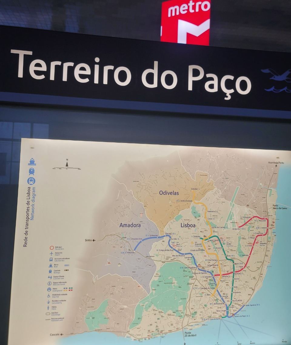코메리시우 광장과 강변 유람선 터미널과 직접 연결된 구조의 Terreiro do Paço 역은 리스본 지하철의 블루라인에 해당되며