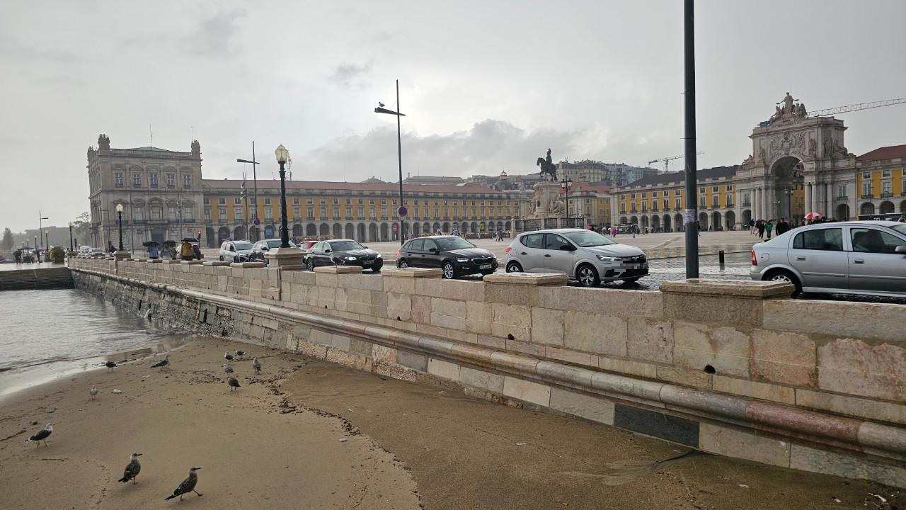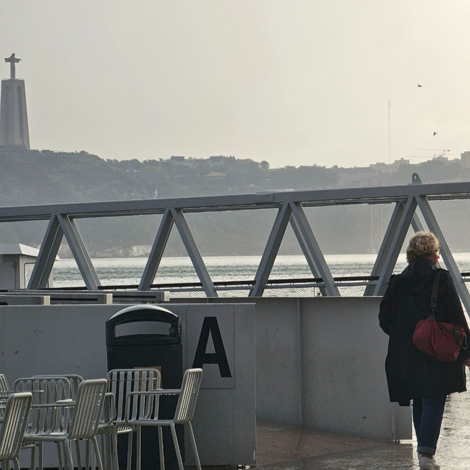 코메르시우 광장에서 테주 강변 끝에는 Cais das Colunas 돌기둥 있는 석계단이 있고 거기서 왼편으로 테주 강 전망대 포인트가 있는데 거기서 사람들이 바다 같은 테주 강 위에 유람선이나 요트가 오가는 것을 바라보는 공간이 있다.