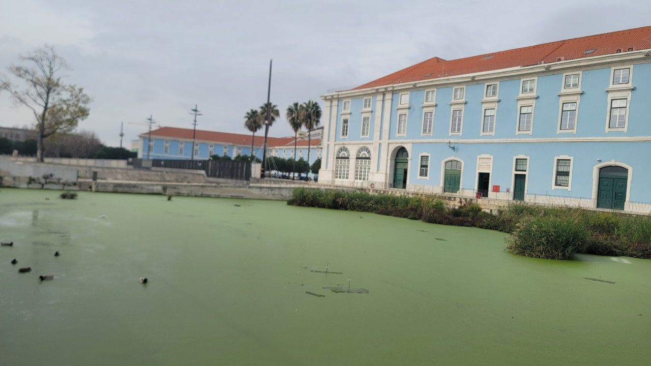 하늘색 건물 앞으로는 초록색 이끼가 가득한 연못에 오리가 거니는 모습을 보고 있노라면 시간을 거꾸로 흘러 18세기 중반 근대 시대에 와있는 것 같은 느낌이 든다. 이 연못에서 가까운 테주 강변에 Caldeirinha Dock이라는 대형 드라이 도크가 남아 있는데, 불과 100년 전까지도 하늘색 부처 건물 뒷편에 조선소가 있었다고 한다.