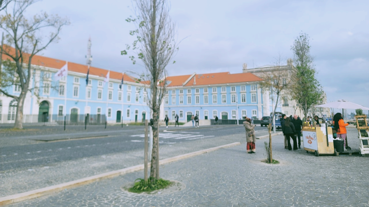 아우구스타 개선문에서 코메르시우 광장으로 곧장 쭈욱 걸어 나와 광장 끝에서 오른쪽 강변 산책로를 따라 걷다보면 붉은 지붕 아래 하늘색 건물이 눈에 띄는데, 여긴 유서깊은 정부 부처 건물 및 서쪽 타워(Edifício dos ministerios e Torreão Ocidental)라고 하는데 1755년 리스본 대지진 이전엔 거대한 세관이 있었던 자리라고 한다.