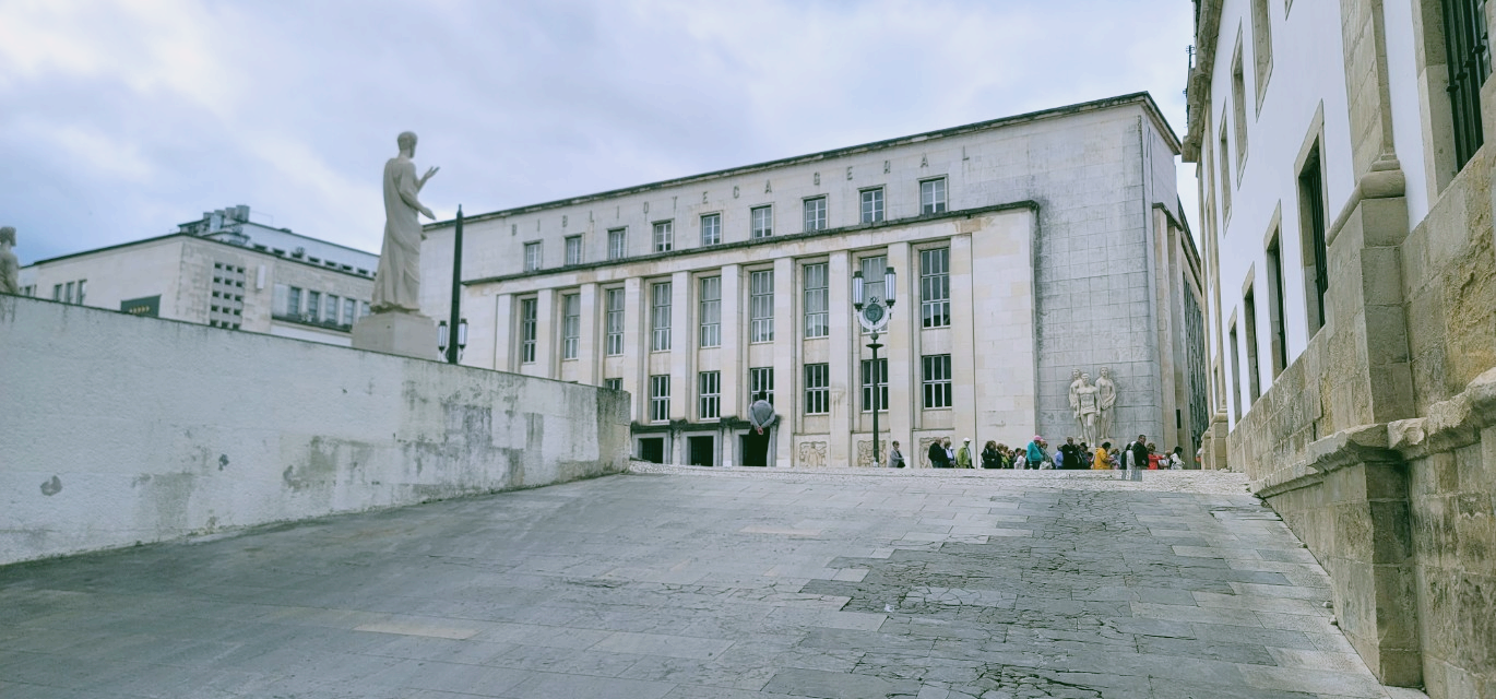 코임브라 구 대학인 학교 궁전(Paço das Escolas)의 철문(Porta Ferrea)을 지나 큰 광장으로 나오면, 1290년 포르투갈 최초의 대학 설립을 명했던 디니스 1세를 기리기 위해 세워진 동상이 세워져 있는데 이 곳 주변으로 코임브라 신 대학교 캠퍼스 건물들이 있다.